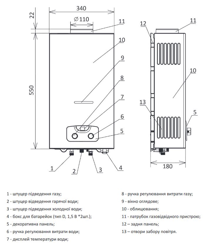 Газовий проточний водонагрівач TERMIC 10C з автоматичним електронним розпалом має багаторівневу безпеку (датчики контролю тяги, контроль полум’я, запобіжний клапан), мідний теплообмінник із захисним покриттям, привабливий сучасний дизайн, стильну панель з LCD дисплеєм, компактні розміри. Пристрій призначений для нагрівання проточної води, що використовується в санітарних цілях (миття посуду, прання, купання) в квартирах та індивідуальних житлових будинках.