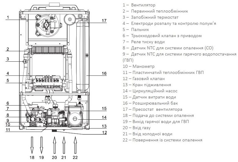 З двома теплообмінниками - окремий з нержавіючої сталі для ГВП