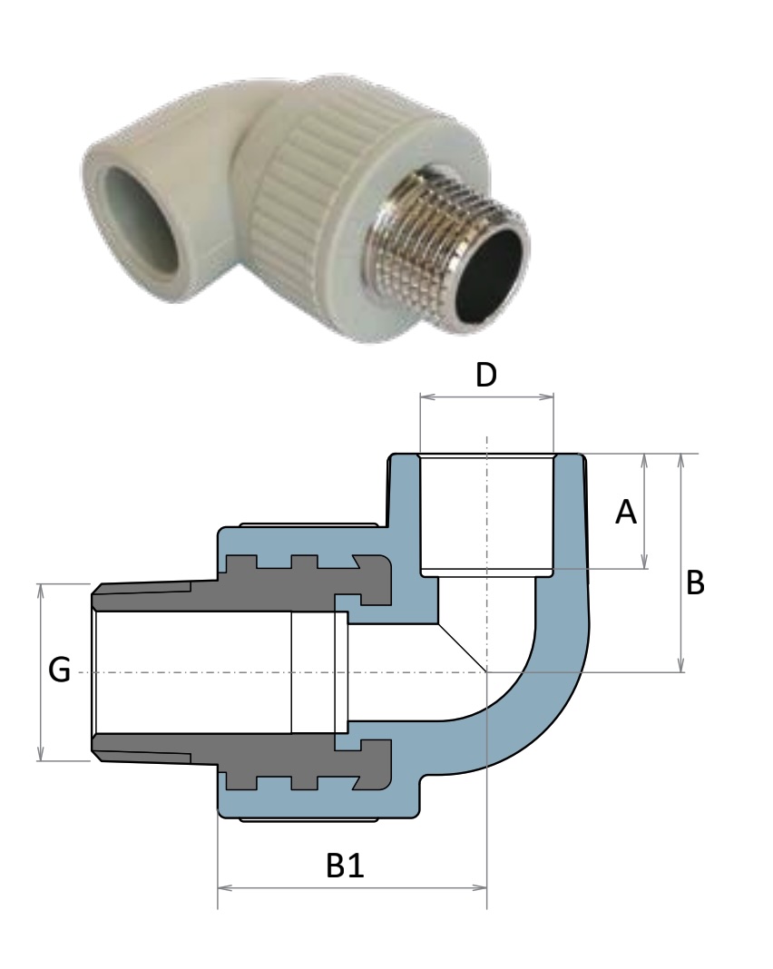 Кутник 90° з металевою зовнішньою різьбою – це сполучний фітинг, призначений для з’єднання труб