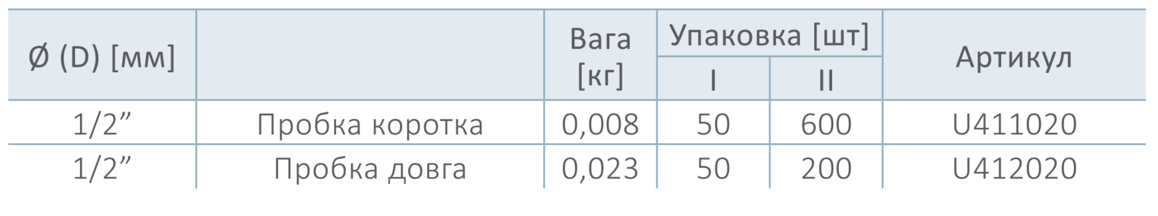 Пробка довга та пробка коротка – це елементи трубопровідної системи, що використовуються для герметичного закриття отворів у трубах або фітингах. Завдяки наявності ущільнювального кільця забезпечується надійне з'єднання без ризику протікання.