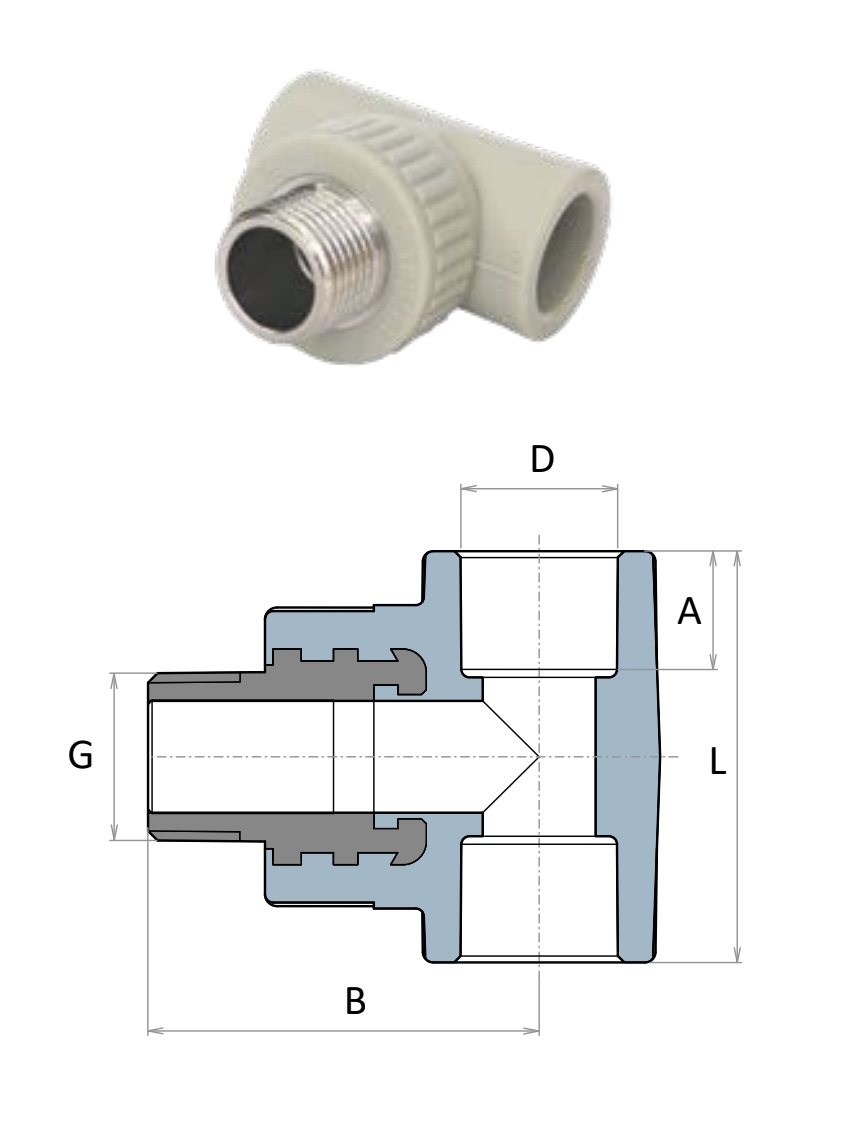 Матеріал: Поліпропілен (PPR) + металевий різьбовий елемент