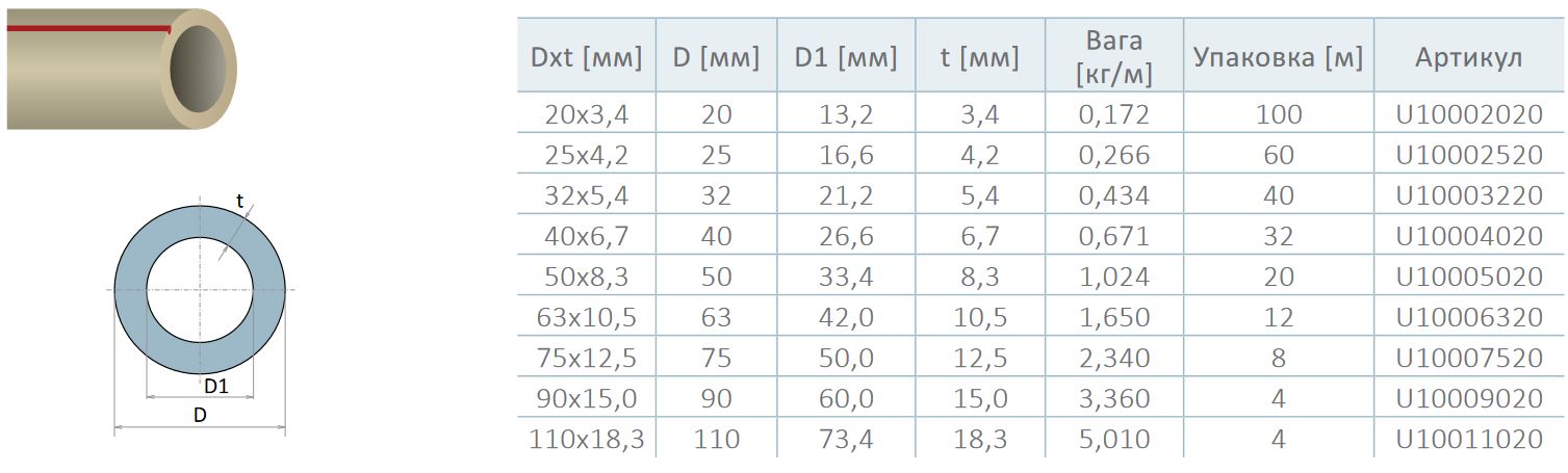 Труба призначена для використання в системах холодного та гарячого водопостачання, витримує температуру до 80 градусів та тиск до 20 бар. Також можна використовувати у системах питного водопостачання.