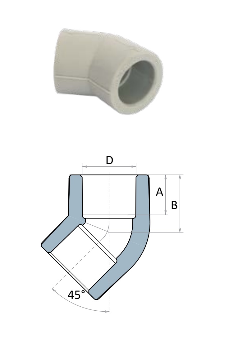 Кутник поліпропіленовий (PPR) під кутом 45° використовується для зміни напрямку трубопроводу під нахилом. Виконаний із високоякісного поліпропілену, що забезпечує довговічність, міцність і стійкість до високих температур та тиску.