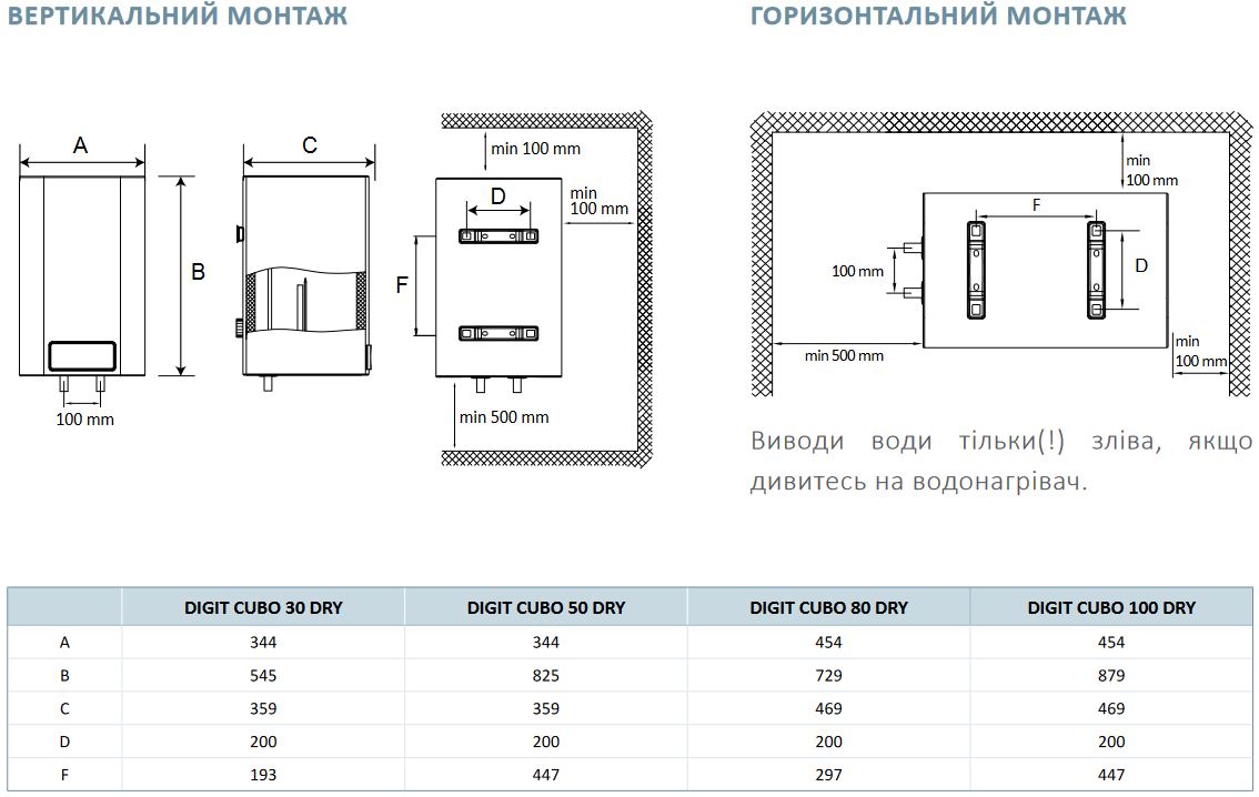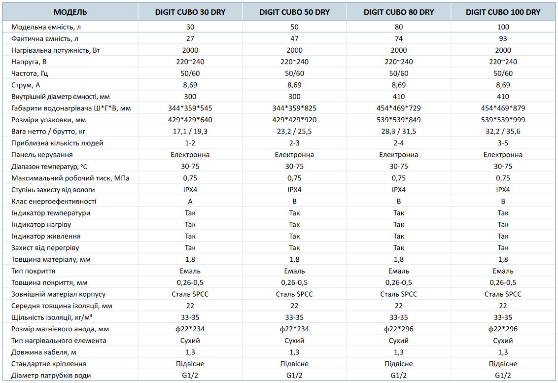 Водонагрівачі DIGIT CUBO 30/50/80/100DRY мають клас захисту IPX4 та оснащені: