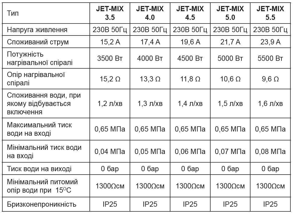 Модельний ряд лінійки JET-MIX включає водонагрівачі потужністю 3.5, 4.0, 4.5, 5.0, 5.5 кВт.